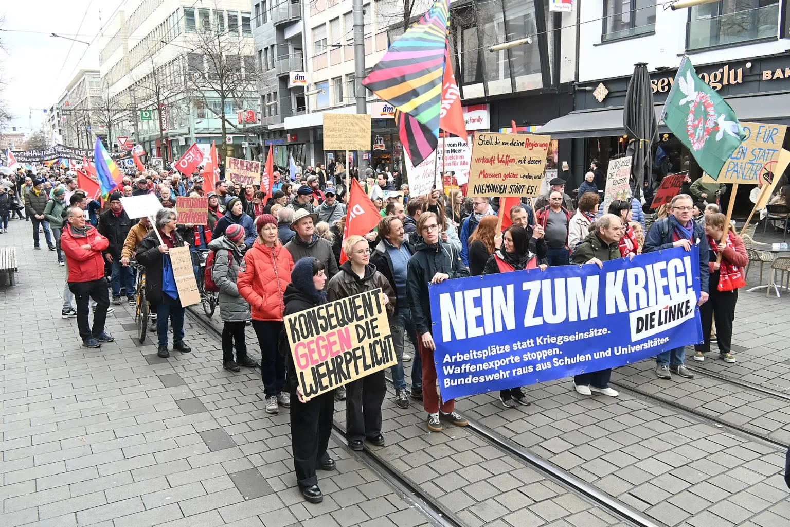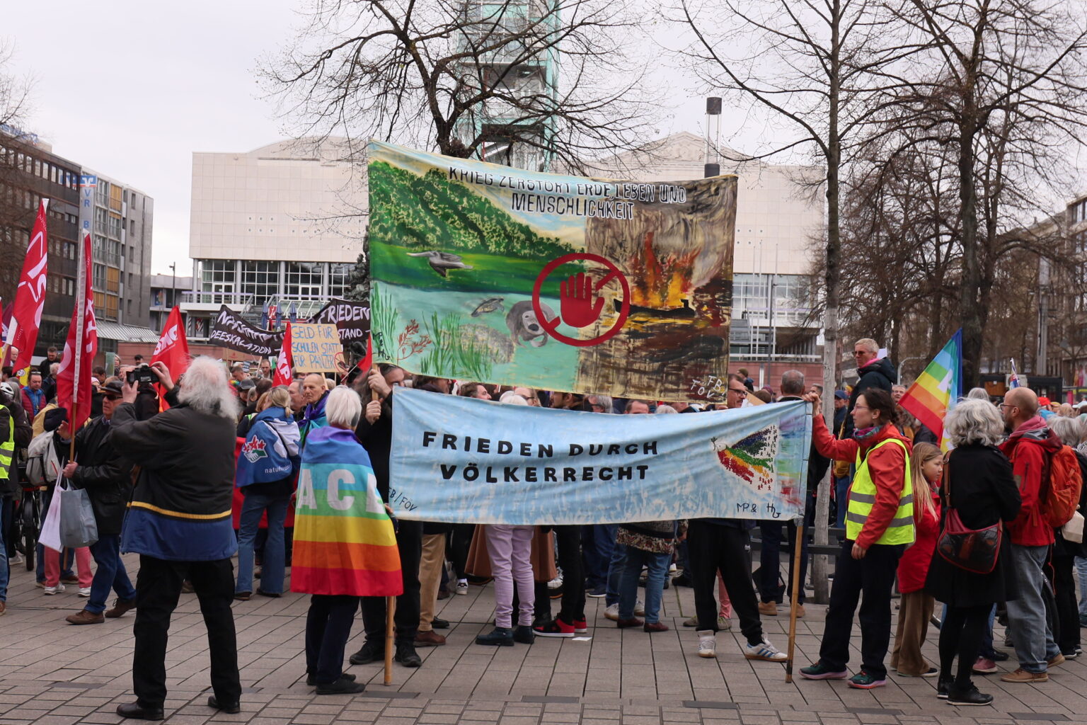 Am Samstag den 04. April 2026 fand unter dem Motto „Frieden durch Völkerrecht der diesjährige Ostermarsch in Mannheim statt. Um 13 Uhr startete die Demonstration mit einer Kundgebung auf dem Paradeplatz in Mannheim.