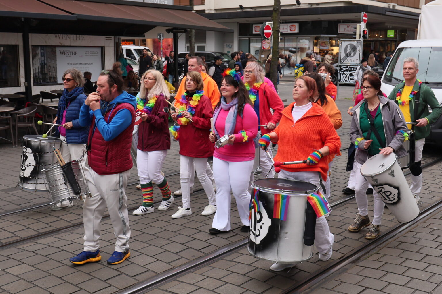 Bis zu 800 Teilnehmer:innen versammelten sich mit bunten Transparenten und verschiedenen Forderungen an die Politik und zogen friedlich durch die Breite Straße in Richtung Alter Messplatz. Für musikalische Begleitung sorgte der Chor „Trotz alledem“ und die Rhythmusgruppe des Mannheimer Trommelpalastes, die mit ihren musikalischen Einlagen für Begeisterung sorgte. Roland Schuster versorgte umstehende Passanten auf dem Lautsprecherwagen mit Informationen.
